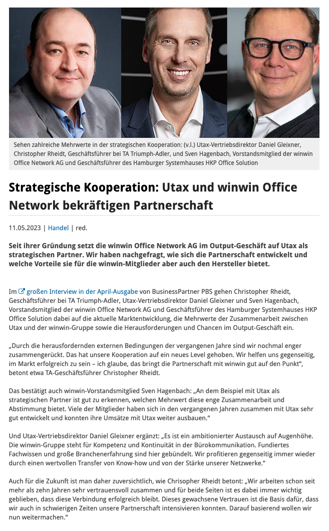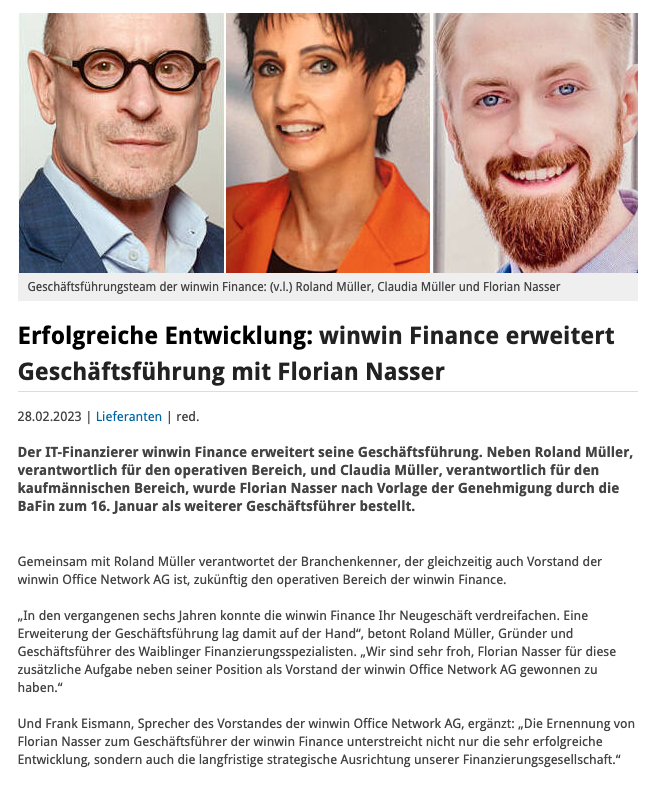 winwin Office Network AG in den Medien